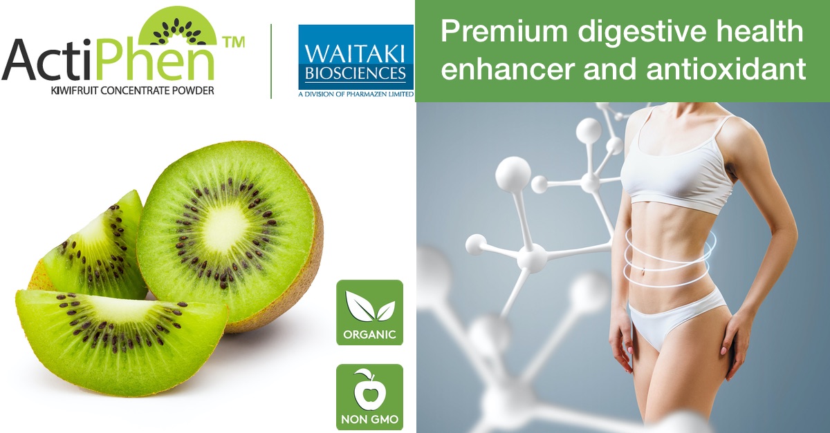 ActiPhen™ is a premium digestive health enhancer and antioxidant from freeze-dried green kiwifruit powder, grown in New Zealand (Actindia Deliciosa).